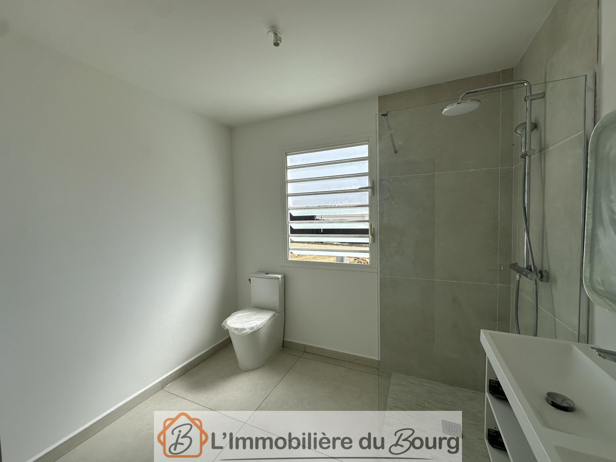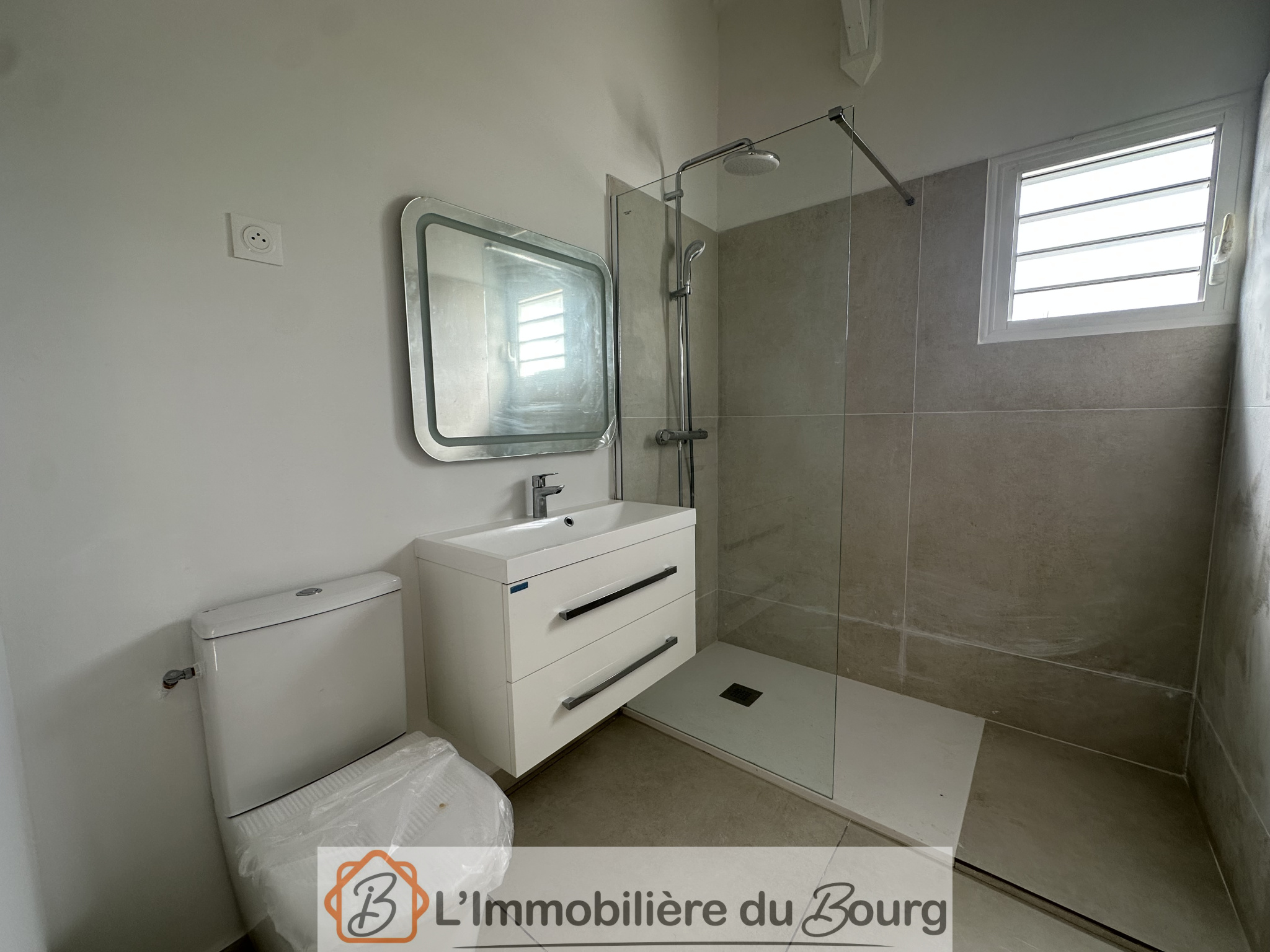 À louer à Bois Sergent, Montebello Petit-Bourg, villa mitoyenne en R+1 offrant 88 m² habitables complétés par une terrasse couverte de 19 m². La villa dispose au rez-de-chaussée d’un vaste séjour avec cuisine semi-équipée, d’une suite parentale climatisée avec dressing et salle d’eau attenante, ainsi que d’un WC indépendant. À l’étage, deux chambres climatisées avec placards intégrés et une salle d’eau avec douche à l’italienne, meuble vasque et WC complètent l’espace nuit. La villa bénéficie d’un jardin privatif d’environ 250 m² clôturé et sécurisé par un portail électrique, de deux places de parking, d’un chauffe-eau solaire et sont éligibles à la fibre optique. Le loyer est de 1 600 € hors charges, les charges mensuelles s’élèvent à 50 € et comprennent la taxe d’enlèvement des ordures ménagères et l’entretien des parties communes, l’eau, l’électricité et l’internet restant à la charge du locataire. Un dépôt de garantie équivalent à un mois de loyer est demandé. Le bail est notarié d’une durée de six ans avec frais à la charge du bailleur. Cette villa moderne et fonctionnelle est idéalement située dans un secteur calme et recherché, à proximité des commodités et des axes routiers, entre Basse-Terre et Pointe-à-Pitre.