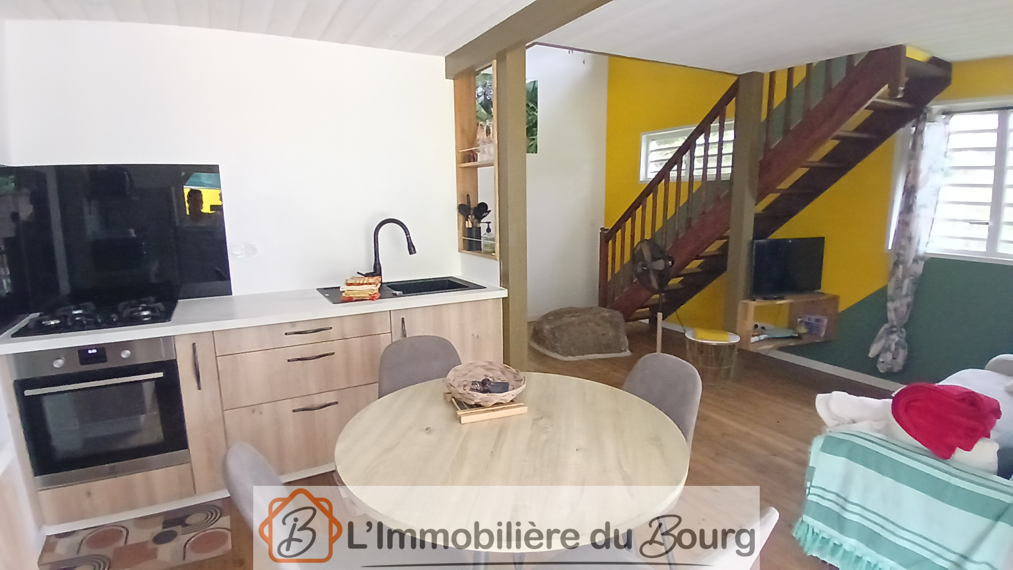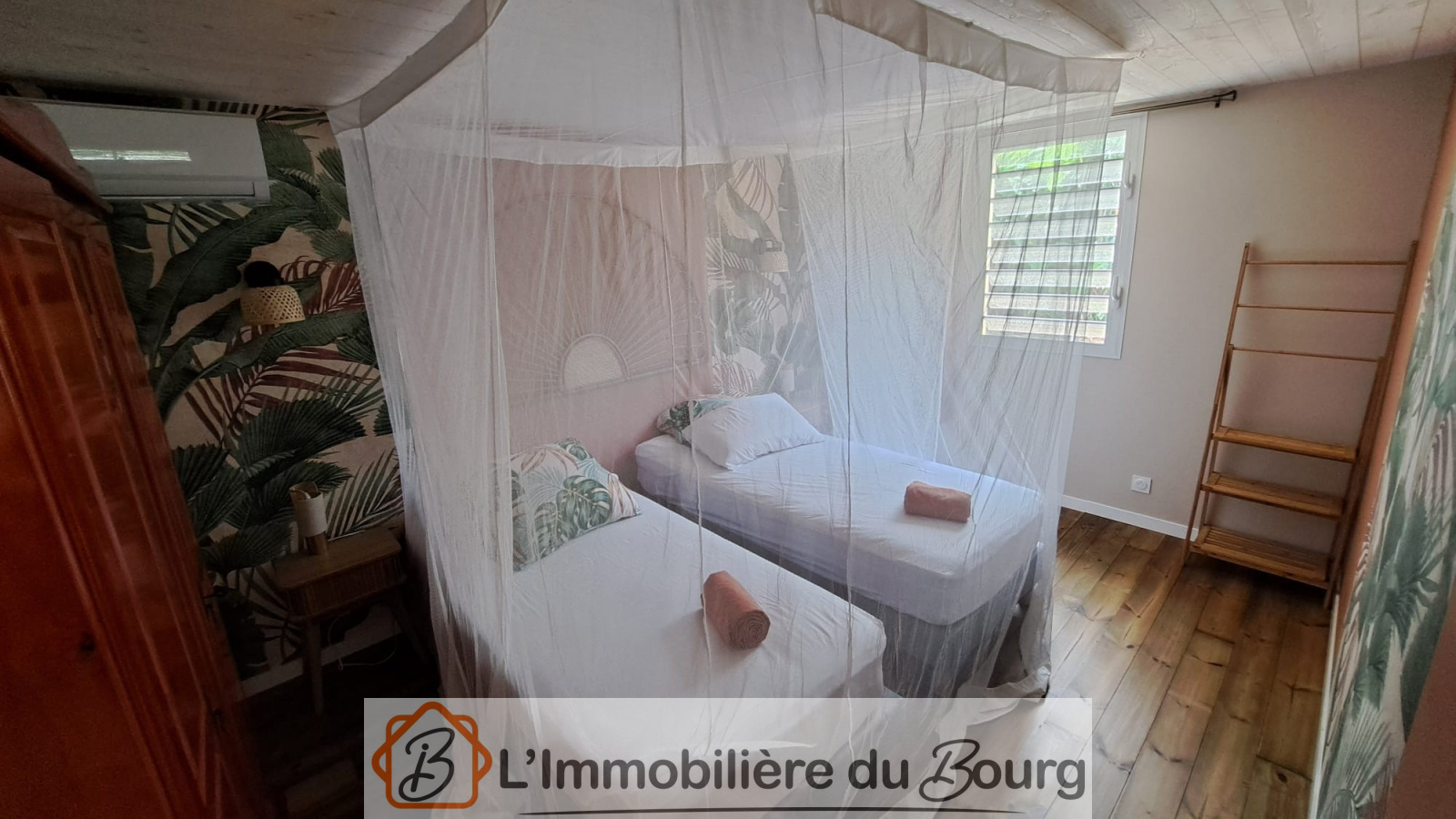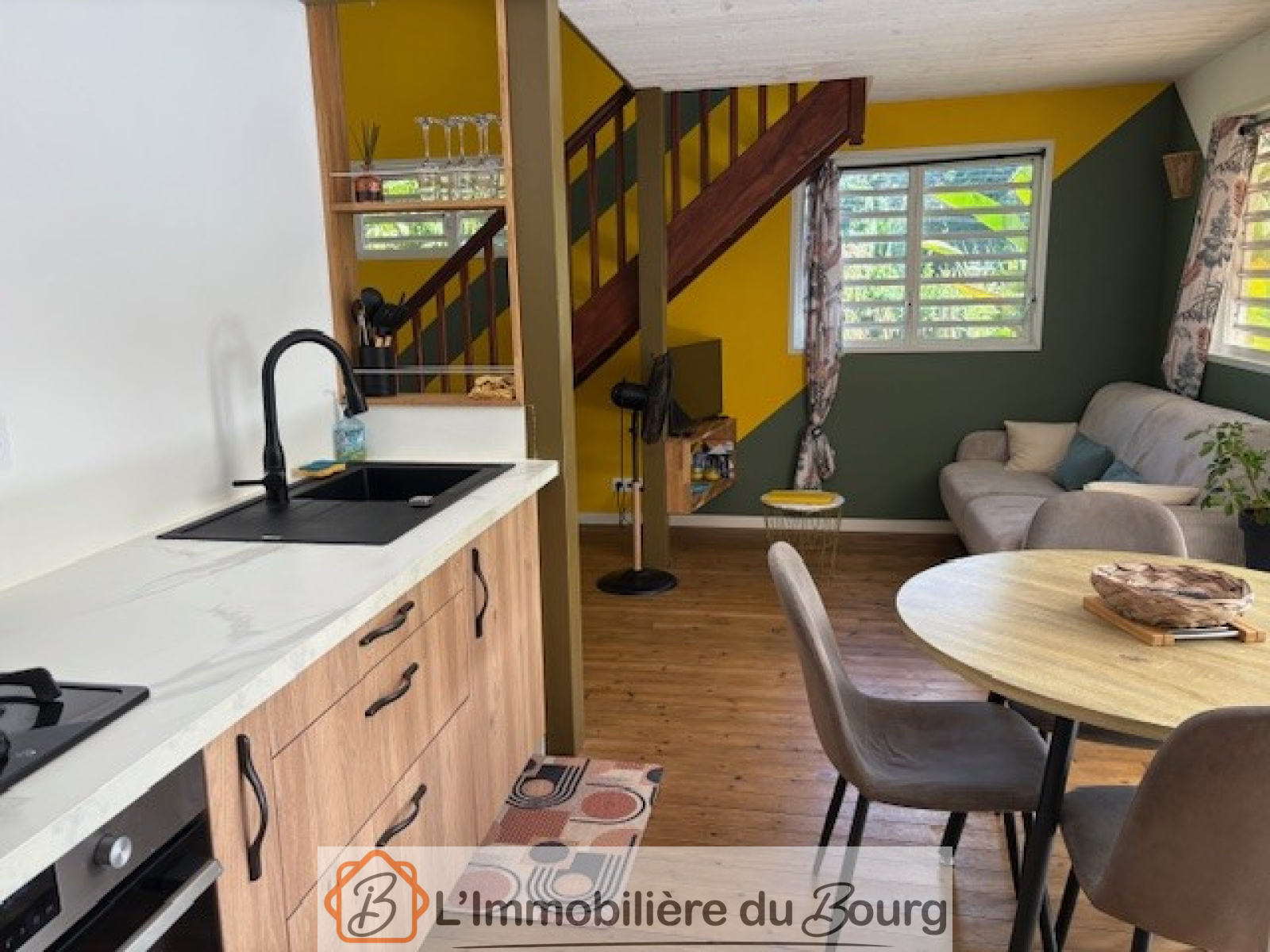 L’appartement mitoyen, entièrement rénové avec soin, se compose au rez-de-chaussée d’un séjour avec coin cuisine, d’une chambre et d’une salle d’eau avec WC. À l’étage, une grande mezzanine climatisée offre un espace supplémentaire idéal pour un couchage ou un bureau.