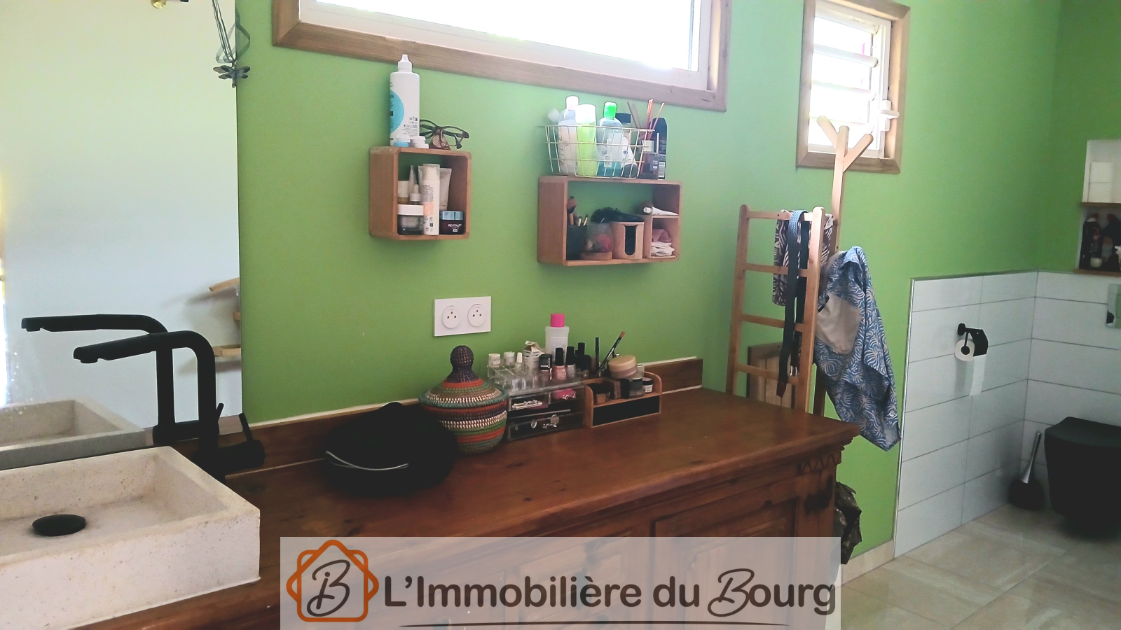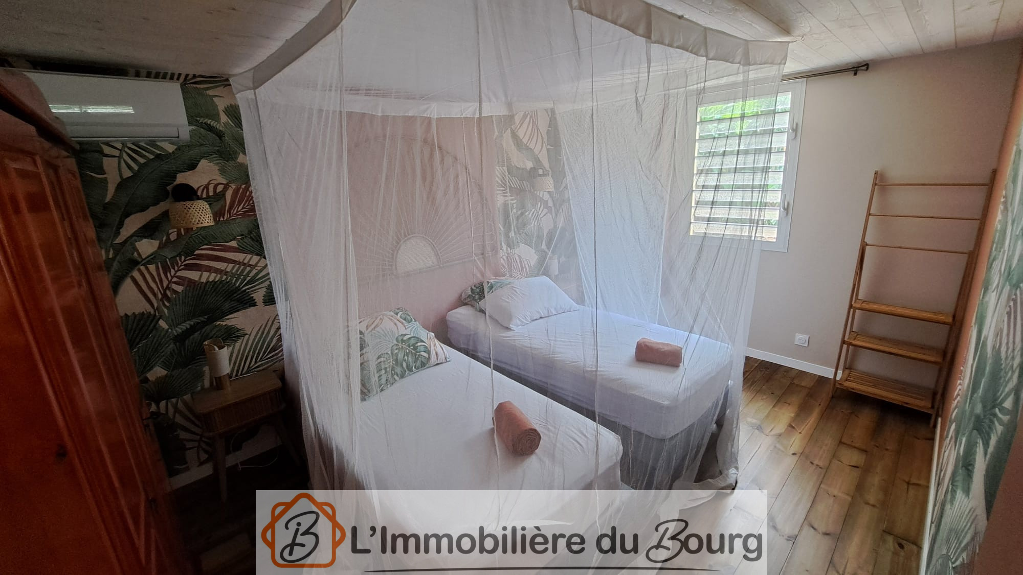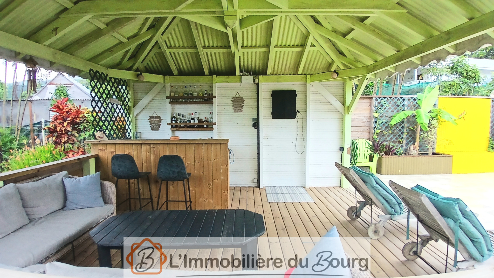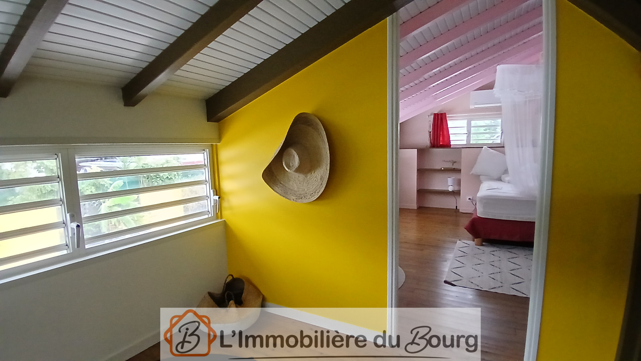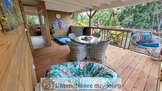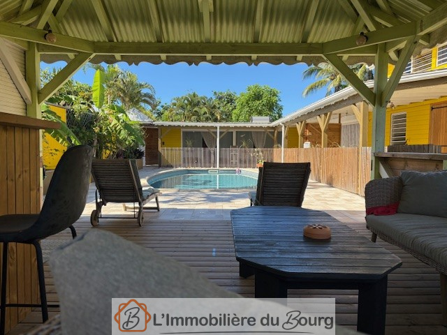 La maison principale offre un bel espace de vie composé d’une grande cuisine ouverte sur le séjour, lumineuse et conviviale, ainsi que d’un coin séjour doté d’un patio à ciel ouvert et d’un bassin qui apportent une atmosphère paisible et unique. Elle comprend également une suite parentale avec une chambre élégante, une salle d’eau à l’italienne, un WC suspendu et des rangements intégrés. Un espace arrière complète l’ensemble avec un cellier, deux chambres ouvertes sur l’extérieur, une seconde salle d’eau à l’italienne et un WC indépendant. À l’extérieur, vous profiterez d’une belle terrasse donnant sur une piscine au sel, tandis qu’un carbet équipé d’un bar à ti-punch, installé de l’autre côté du bassin, vous permettra de partager d’agréables moments en toute convivialité.